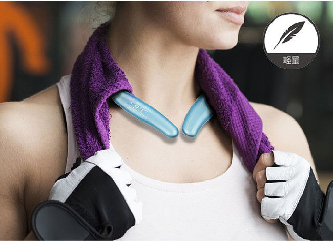 重量はわずか114g スポーツ中でも作業中でも邪魔にならずしっかり熱中症対策が可能です。また肌に直接触れても18℃以下になることがないためしっかり冷たさは感じますが、一般的な保冷剤を用いたもののように冷たすぎる感じはありません。