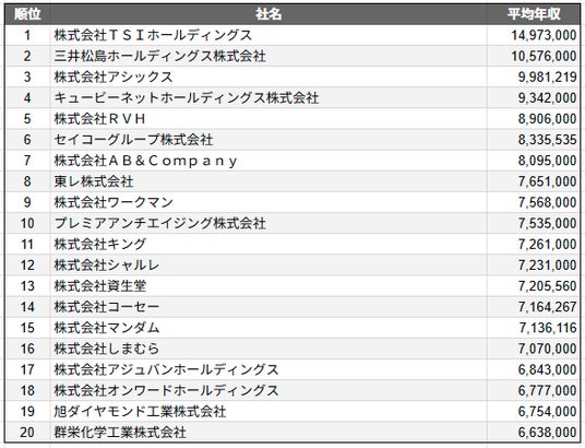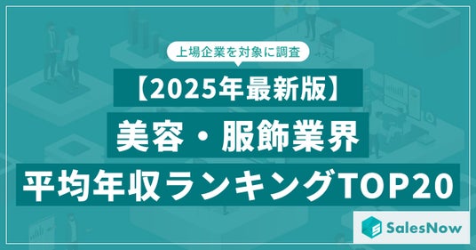 株式会社SalesNow(本社:東京都渋谷区、代表取締役:村岡功規、以下「当社」)は、国内540万社の企業情報を完全網羅した日本最大級のデータベース「SalesNow DB」より、上場企業における美容・服飾業界の平均年収ランキングTOP20をお知らせします。