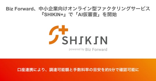 株式会社マネーフォワードと、三菱UFJフィナンシャル・グループ2社との合弁会社である株式会社Biz Forwardは、中小企業向けオンライン型ファクタリングサービス『SHIKIN+』で口座連携をしているユーザー向けに「AI仮審査」の機能を提供開始します。これにより、ユーザーは調達可能額と手数料率の目安を約5分で知ることができます。 本機能の提供は7月上旬頃を予定しています。