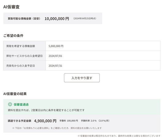 ※1 「AI仮審査」はあくまでも目安であり、確定的な審査結果をお約束するものではありません。最終的な審査結果は審査書類の提出後にお知らせします。