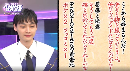 2025年2月14日(金)放送の#32にて、声優・戸谷菊之助さんが二次元と三次元を行き来する多次元アイドルプロジェクト『UniteUp!』の魅力を直々に紹介。見事戸谷さんが所属する新人アイドルユニット「PROTOSTAR」が優勝し、『シブアニ』の出演権を獲得したことから、2025年4月4日(金)#42では、「PROTOSTAR」の戸谷菊之助さん、山口諒太郎さん、平井亜門さんが満を辞してスタジオに登場。ユニットの推しポイントを熱く語りました。