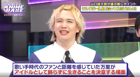 山口さんは、歌い手時代のファンと距離を感じていた万里がアイドルとして飾らず生きることを決意するシーンのセリフ「そしてもう一度、僕と出会ってくれたらうれしいな」を挙げ、「歌い手出身のアイドルグループなんですけど、歌い手のときに好きだったファンが『アイドルになっちゃって好きだった彼らはどこかに行っちゃったのかな』というようなネットの書き込みを万里くんたちが目にしてしまって、離れちゃった人にももう一回笑顔になってもらいたい、アイドルになった自分たちを見てもらって、もう一回離れちゃっていた人たちに好きになってもらおうっていうふうに思うんですよ。」と本シーンについて熱弁します。