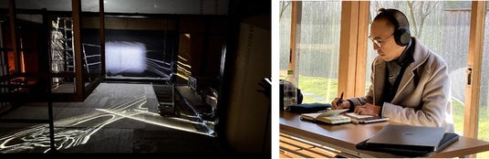 ヤン・ヘギュとアピチャッポン・ウィーラセタクンが初めて協働で取り組む「昼」と「夜」で構成された展示は、太平洋を囲む火山帯(リング・オブ・ファイヤー)に自然界の営みの連続性を見出し、前者はヤンの音の彫刻に切り絵のランタン、後者はウィーラセタクンのサウンドと映像、照明が加わることで、音と動き、光と影の世界が家屋のなかで繰り広げられます。