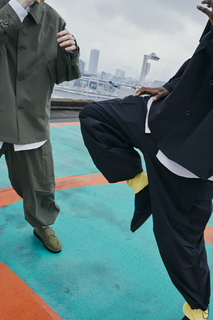 一方パンツはis-nessでも定評のある6ポケットをベースにしながら、素材が生きるシルエットに絶妙にアップデート。イージー型のカーゴパンツで、裾にはドローコードを施しシルエットのアレンジも可能となっている。