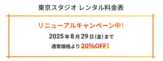キャンペーン適用条件:スタジオ利用実績として、法人名をHPに掲載させていただくことを条件といたします