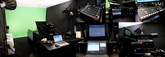 クロマキー合成のグリーンバックを標準装備しており、お好みのバーチャル背景やスライドの合成により、プロクオリティの教材映像収録を実現いたします。