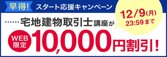 株式会社ユーキャンでは、2024年11月21日(木)よりWEB限定キャンペーンを開始しました。12月9日(月)まで、WEBからの受講限定で宅地建物取引士講座の受講料を10,000円割引いたします。