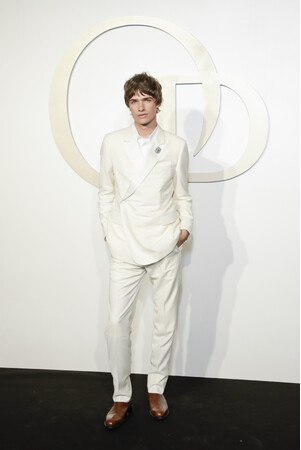 9月21日、パリ国立オペラのオープニングガラに出席したピエール・ド・メール。キム・ジョーンズによるディオールのメンズ コレクションより、オフホワイトの「テイラー オブリーク」ピークドラペルタキシードにホワイトコットンシャツを合わせ、胸元にシルバーのブローチを添えた装いで登場しました。