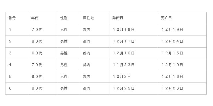 都内で新型コロナウイルスに感染した方が死亡されましたのでお知らせします。