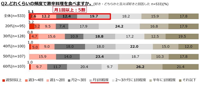 猛暑を乗り切るために欠かせない存在となっている「激辛料理」。好きな人は昨年と同じの4割超、「月に1回以上食べる」と回答した人は半数にのぼり、一定層での定着がみられます。