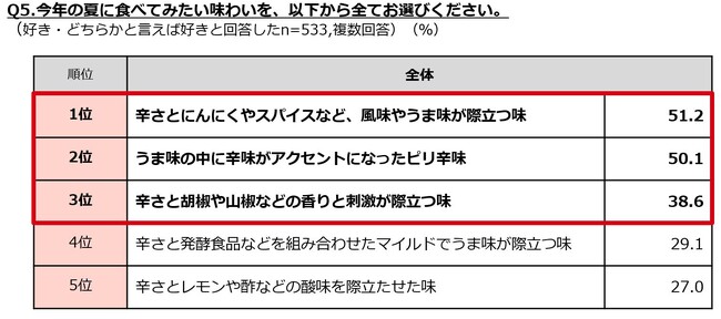 ・今夏に食べたい激辛料理は「辛さとにんにくやスパイスなど風味やうま味が際立つ味」がトップに。