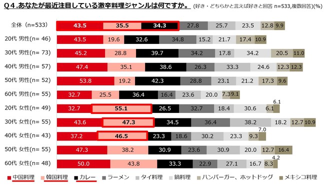 ・注目している激辛料理のジャンルは「中国料理」「韓国料理」「カレー」がTOP3。
