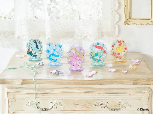 それぞれのアクリルスタンドには、今にも振り返りそうなプリンセスのモチーフキャラクターが描かれています。