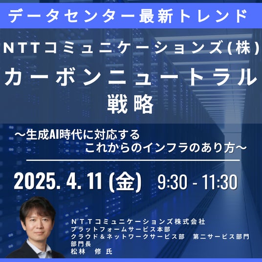 JPI(日本計画研究所)は、NTTコミュニケーションズ株式会社 プラットフォームサービス本部 第二サービス部門 部門長 松林 修 氏を招聘し、データセンターの最新トレンドとNTTコミュニケーションズ(株)のカーボンニュートラル戦略について詳説いただくセミナーを開催します。