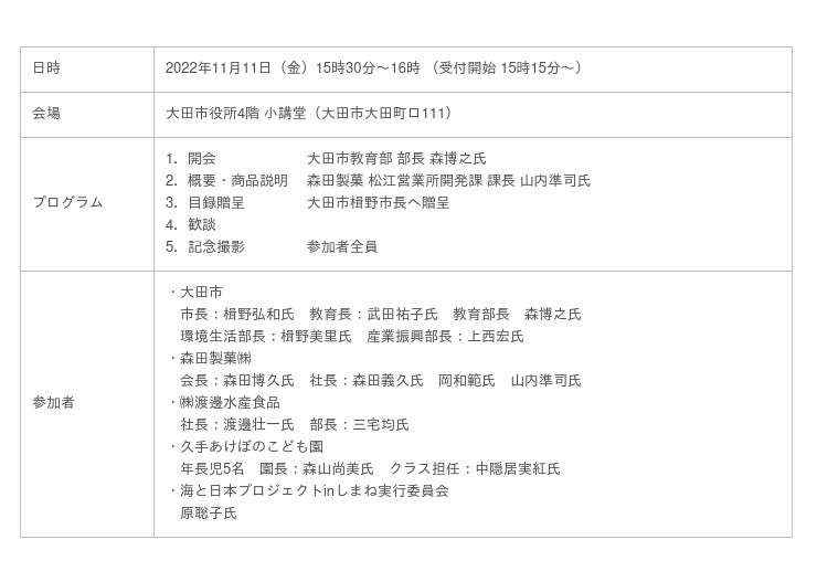 【商品披露・寄付金贈呈式】2022年11月11日(金)15時30分~ <大田市役所>