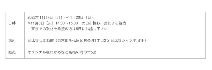 【発売イベント】2022年11月7日(月)~11月20日(日) <日比谷しまね館>