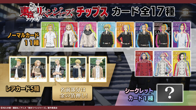 株式会社 CyberZ(本社:東京都渋谷区、代表取締役社長:山内隆裕)の連結子会社、株式会社 eStream(本社: 東京都渋谷区、代表取締役社長:高井里菜)は、TV アニメ『東京リベンジャーズ』より、限定描き下ろしイラストを使用したカードがランダムで 1 枚ついてくる「東京リベンジャーズ チップス」を 4 月 26 日(水)より、全国アニメイト、当社が運営する EC サイト eStream Store、その他全国量販店の菓子売場等にて順次発売することを決定いたしました。