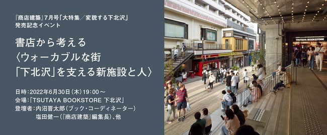 カルチュア・コンビニエンス・クラブ株式会社(以下、CCC)と、「TSUTAYA」の加盟企業である株式会社MPDが、京王電鉄株式会社が下北沢駅高架下で開業した新施設「ミカン下北」内に、3月30日に出店した「TSUTAYA BOOKSTORE 下北沢」にて、店舗空間デザイナーから絶大な支持を得ているインテリアデザインの専門誌『商店建築』の2022年7月号「大特集/変貌する下北沢(6/28発売)」の発売を記念して、6月30日(木)19時より「書店から考える〈ウォーカブルな街「下北沢」を支える新施設と人>」をテーマにしたトークイベントを、開催いたします。本トークイベントは、オンラインでもご参加が可能です。