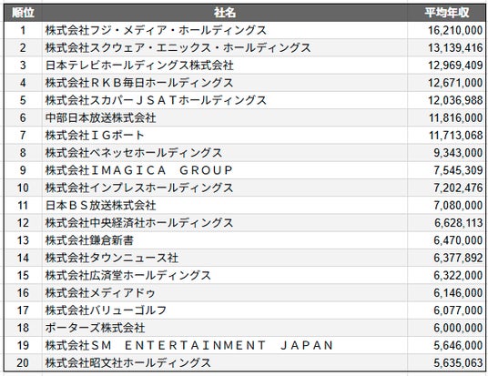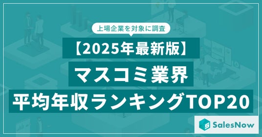 株式会社SalesNow(本社:東京都渋谷区、代表取締役:村岡功規、以下「当社」)は、国内540万社の企業情報を完全網羅した日本最大級のデータベース「SalesNow DB」より、上場企業におけるマスコミ業界の平均年収ランキングTOP20をお知らせします。