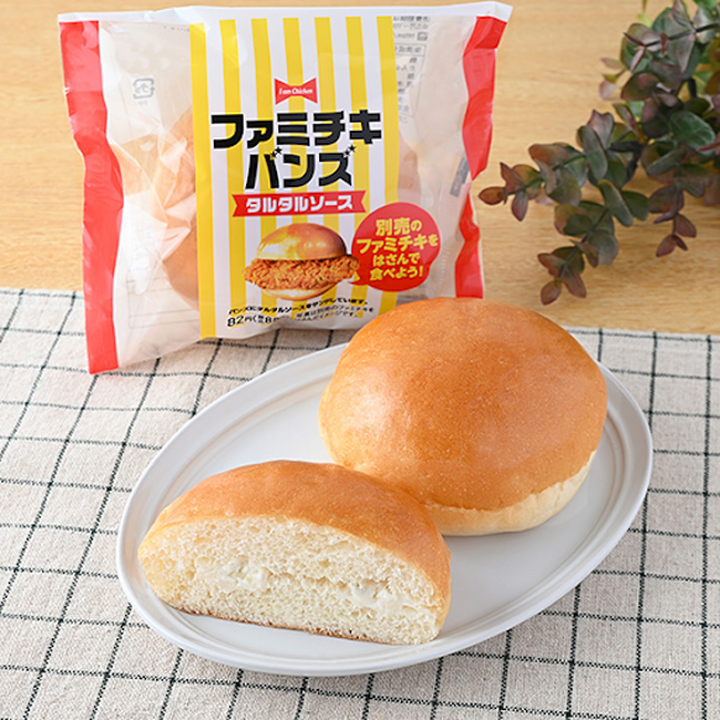 【内容】ファミチキなどの揚げ物・お惣菜を挟んでバーガーとしてお楽しみいただくためのバンズです。ふんわりした食感のパンにタルタルソースをサンドしました。