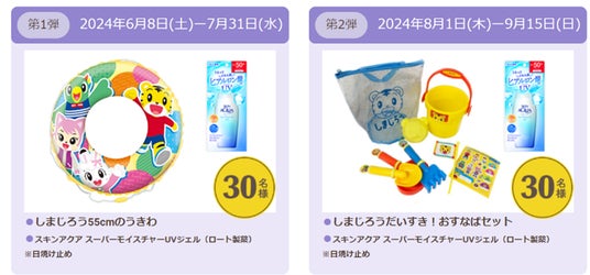 抽選で合計60名に、しまじろうの外遊びグッズとロート製薬の日焼け止めをプレゼントいたします。