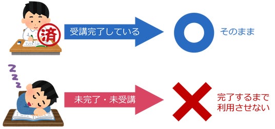 指定されたeラーニングが未完了の場合、リンクをクリックした受講者を、自動的に該当のeラーニング受講画面へ強制的に遷移させることができます。