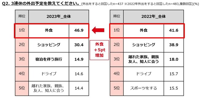 新型コロナ5類移行後初の3連休は「外食」が人気、平均予算は昨年より1,750円と大幅アップ!