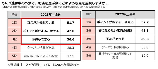 ・店選びの重視点は「コスパ」「ポイントが貯まる、使える」「予約ができる」がTOP3。