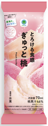 このたび、第1弾として発売した福島県産の桃を使ったアイスバーの「とろける食感ぎゅっと白桃」をリニューアルして発売いたします。福島県産桃果汁を46%使用し、桃本来のおいしさをより感じられる仕立てとしました。