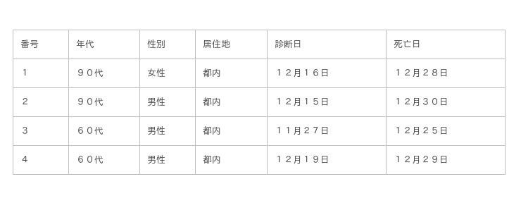都内で新型コロナウイルスに感染した方が死亡されましたのでお知らせします。
