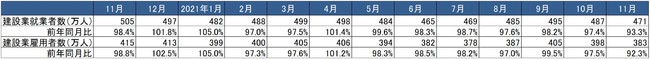 <公的データからみる最新の建設業界の雇用関連トピックス:2021年11月>