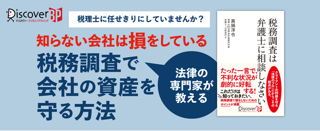株式会社ディスカヴァー・トゥエンティワン(本社:東京都千代田区、代表取締役 兼 社長執行役員:谷口奈緒美)は2024年3月22日に『税務調査は弁護士に相談しなさい』(眞鍋淳也・著)を刊行しました。