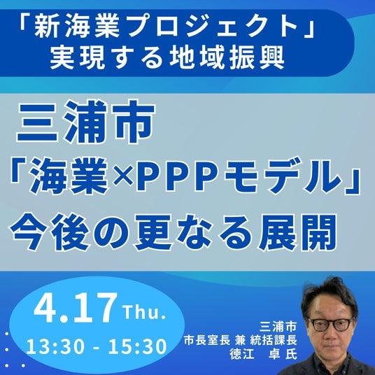 JPI(日本計画研究所)は、三浦市 市長室長 兼 統括課長 徳江 卓 氏を招聘し、三浦市「海業×PPPモデル」と今後の更なる展開について詳説いただくセミナーを開催します。