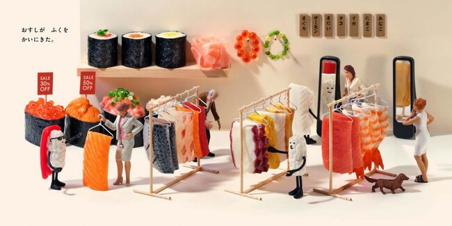 現在続編「おすしが あるひ たびにでた」(2024年2月発売予定)を手がけており、内容もさらにパワーアップ!子どもも大人も作者が生み出す見立ての世界でぜひ遊んでください!