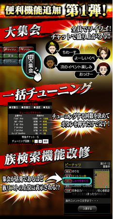 「一括チューニング」機能の追加で、チューニングが楽になり魂の解放が簡単に!さらに、プレイヤー同士が気軽に話せる「大集会」などの機能を順次追加します!