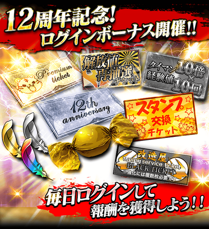 12周年キャンペーン期間中、豪華ログインボーナスを実施!期間中は毎日「12周年ガチャチケット」が獲得可能です!