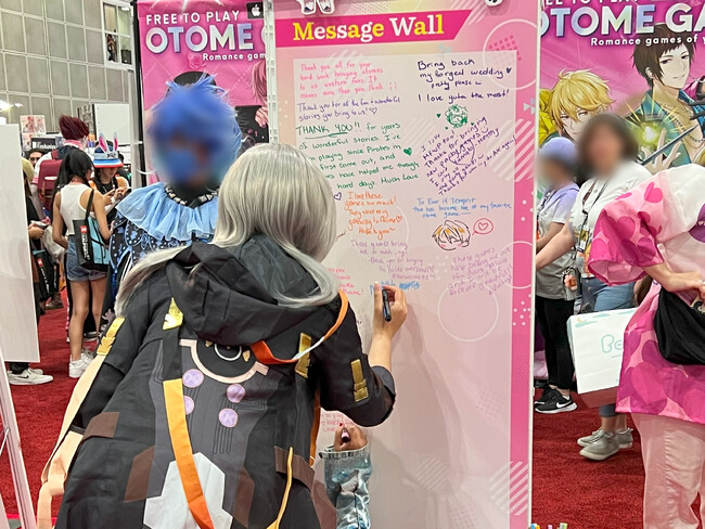ブースに設置されたメッセージボードには、ファンの方からたくさんのコメントで埋め尽くされ、枠からはみ出るほどに。「戻ってきてくれて嬉しい!」「これからもボルテージが大好き!」「このキャラが大好き!」「あの作品をもう一度配信して…!」など熱烈なメッセージが多く見受けられました。