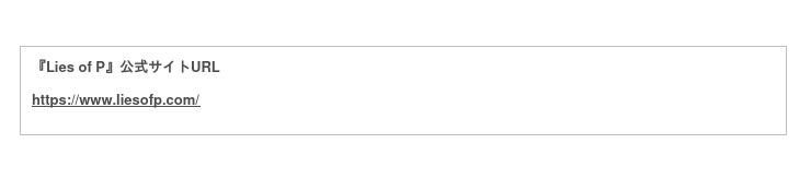 <最新トレーラー「Lies of P - Official Release Month Trailer」URL>