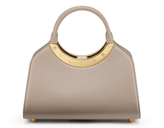 機能性、洗練されたエレガンス、そして確かなディテールが見事に融合したこの新しいモデルはどのような着こなしにも合わせやすく、シーンを選ばない魅力を備えており、デイリーウェアの次なるアイコンとなることでしょう。硬質で収納力のあるバッグ本体と、曲線を描くメタリックな装飾が生み出す特徴的な組み合わせに、トップハンドルの形が遊び心を添えています。古代ローマの大文字を用いたブルガリのロゴをあしらったこの象徴的な装飾は、 「ブルガリ ローマ」バッグのアイコニックなシグネチャーであり、丸みを帯びたトップハンドルと合わせて円を描いています。