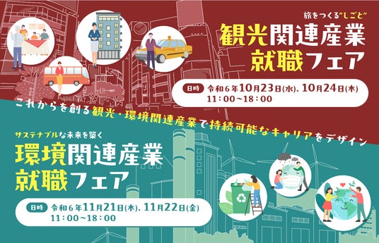 東京都内の環境関連産業、観光関連産業の企業が約50社ずつ参加する合同就職説明会/面接会です。