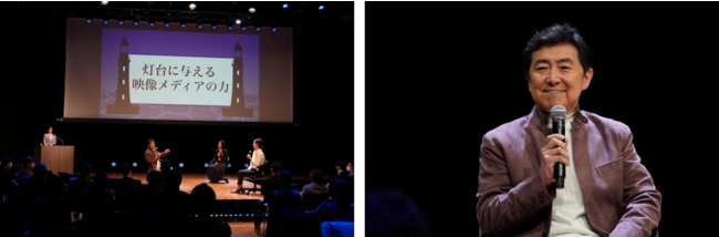 さらに、笠井氏は番組で訪れた灯台の1つ男木島灯台がアニメや漫画の聖地巡礼スポットになっていることを例に「新しいメディアと力を合わせることで灯台観光の新たなきっかけ作りになる。」と話しました。また、トークセッションの感想を訊かれたパネリストのたかまつ氏は「これまで灯台を役割としてしか見ていなかった。映像があることで地域における灯台の存在・歴史・文化・構造・周囲の特徴まで見られるのが映像の良さだと思う。灯台に行くときは映像を見てから訪れたい。」と語り、メディアと灯台が持つ可能性に期待が高まるトークセッションとなりました。