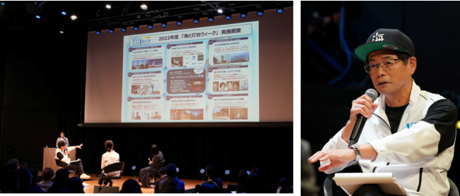 2021年度に引き続き、今年もBS特番「中村獅童の灯台見聞録」(※)に出演し、歌舞伎役者の中村獅童氏と共に各地の灯台を回り取材を行ったフリーアナウンサーの笠井信輔氏とパネリストの不動まゆう氏、たかまつなな氏が、「海と人との関わりの中で灯台が果たす価値や役割」について、異分野であるメディア・映像の観点から語り合いました。また、「中村獅童の灯台見聞録」で主役を務める中村獅童氏、現代アーティストの小松美羽氏からのビデオメッセージも上映されました。仕事で訪れた後、プライベートでも灯台を訪れるようになったという笠井氏は、番組のロケを振り返って灯台それぞれが異なる役割を持っていることに着目し、「巡る楽しさを教えてくれた」と感想を話しました。さらに、日本には登れる灯台が16灯台あることに言及すると「カップルで訪れて登る体験を共有するデートスポットとして灯台を活用できるのでは。」と利活用のアイデアが飛び出す場面もありました。