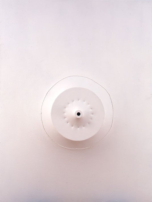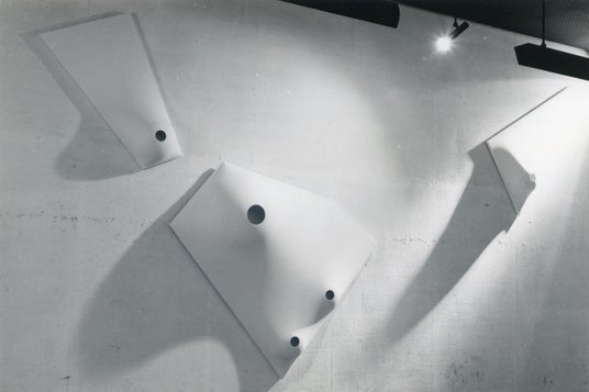 1946年に大阪で生まれた今井祝雄は、大阪市立工芸高等学校在学中の1964年、17才の時に第14回具体美術展へ初出品し、翌年最年少作家として「具体美術協会(具体)」会員となりました。1966年に「第10回シェル美術賞」で一等賞を受賞し、同年7月にグタイピナコテカで個展を開催、絵画や立体作品、モーターを利用した作品を「具体」で発表する一方、「第1回草月実験映画祭」(草月会館ホール・東京、1967)や「現代の空間’68-光と環境」(そごう・神戸、1968)では映像や光による作品を発表するなど、「具体」の新時代を担うメンバーの一人として活躍します。1970年代以降は、写真や映像、音などのメディアを用いた、空間や環境についての深い思索にもとづく作品や、パフォーマンスを含む身体的な表現を通して「空間」「時間」「現象」「存在」といった人間にとっての根源的な主題について考察する作品を数多く制作する一方、街中の公共的空間に作品を設置する活動も行うなど、現在も国内外で精力的に発表を続けています。