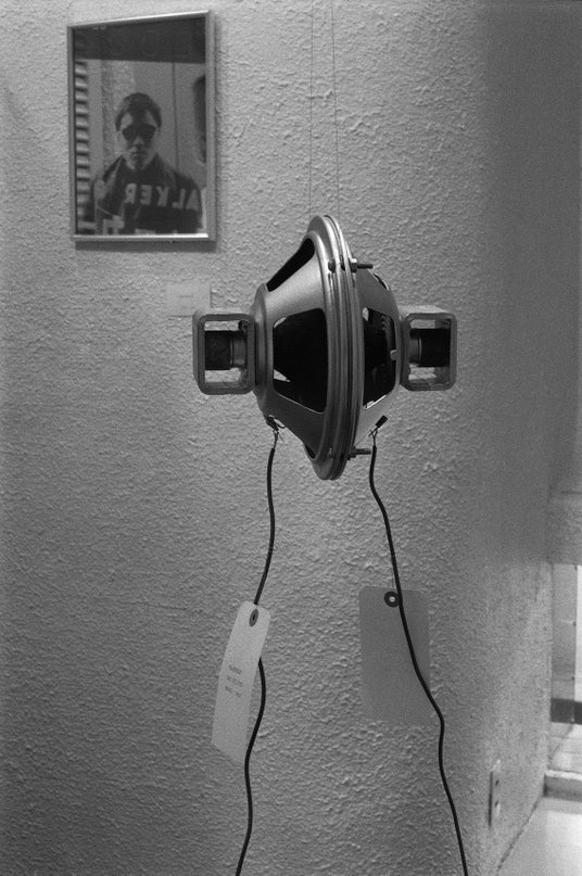 《Two Heartbeats of Mine》 1976 インスタレーション 合体スピーカー、心音テープ、プレイヤー2台 作家蔵