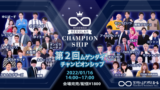 この度、東京・渋谷に構える劇場「ヨシモト∞ホール」にて、2022年1月16日(日)に開催する「第2回ムゲンダイチャンピオンシップ」の優勝特典が、【FANYチャンネル冠特番権】と【ヨシモト∞ホール1日支配人】に決定したことをお知らせします。