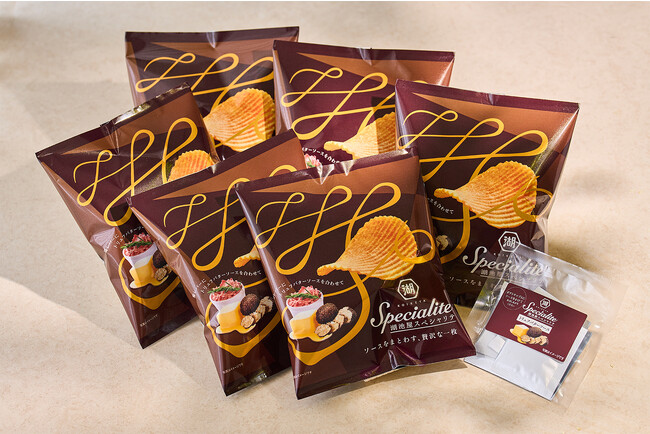 「スペシャリテ」とは、フランス料理において、その店のシェフが最も得意とする一皿のことです。日本のポテトチップスの老舗として、これまでとは違うポテトチップスの美味しい食べ方をご提案したいという想いから、「湖池屋Specialite」は誕生しました。国産じゃがいもの味わいを活かしたポテトチップスに、贅沢な味わいのソースをまとわせて食べる、まさに湖池屋の「スペシャリテ」と呼ぶに相応しい一品です。