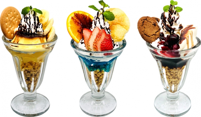 「シーズナルパフェ Be my valentine. (ハルト・アオイ・チアキ)」 各1,280円+税