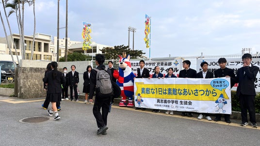 「おおきなわ」の活動の一環として実施している「ゴーディーによる朝のあいさつ運動」において、1月は那覇市、名護市、宜野湾市、北中城村、北谷町の小学校、中学校、高等学校を訪問し、あいさつ運動に参加いたしました。ご協力いただいた各学校の皆さま、ありがとうございました。