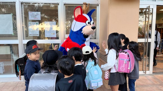 また、今回初めて高等学校であいさつ運動を実施しました。予想外のゴーディーの来校に驚きながらも、あいさつを返してくれたり手を振ってくれたりと、高校生らしい落ち着いた温かい反応で、朝のひとときを一緒に楽しむことができました。