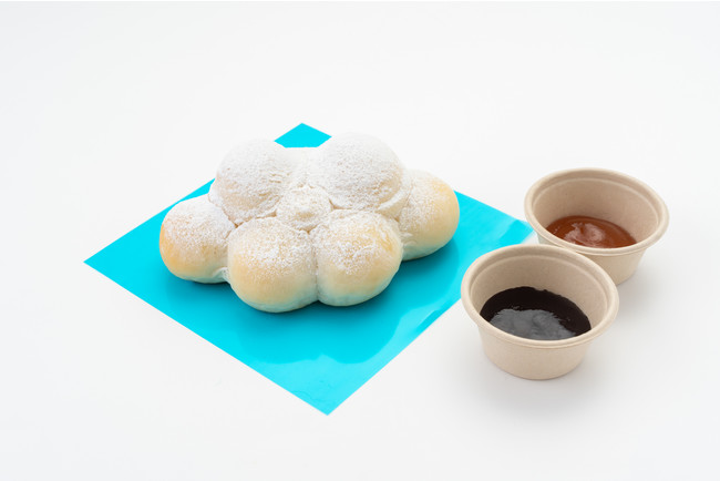 生地にクリームチーズを練り込み、低温でゆっくりと焼き上げたもちもちフワフワ食感のパンは、標高が高い富士山麓山エリアでより身近に感じられるにかかる雲を表現しました。山梨県産の桃と葡萄を使った手造りジャムをつけてお召し上がりください。